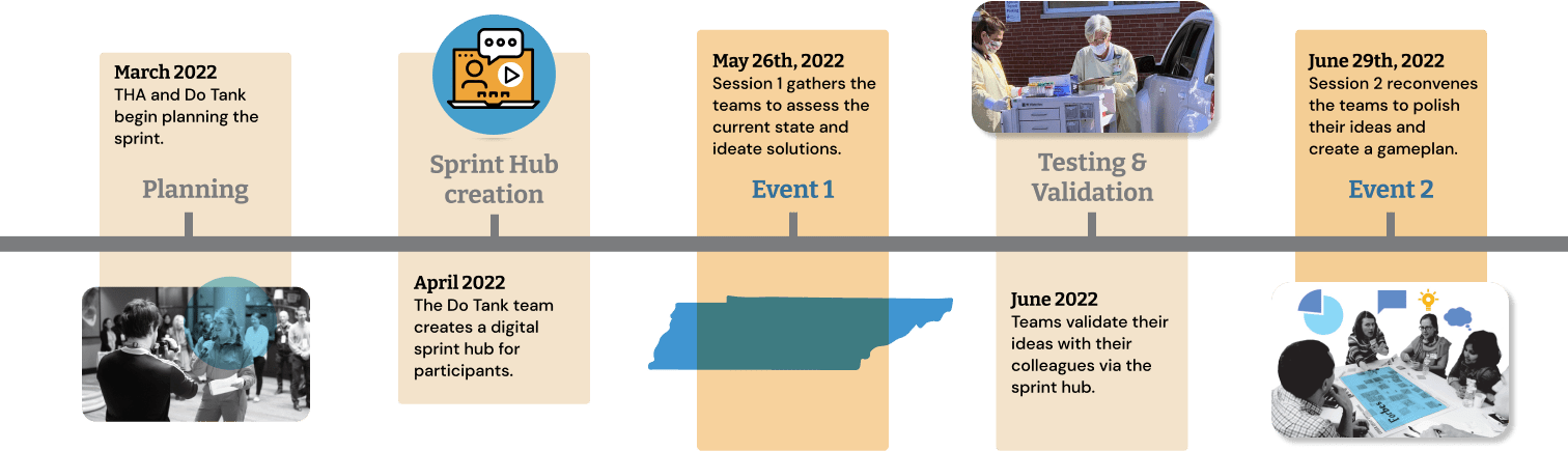 A nationwide nursing shortage has left departments all over the country understaffed and under-prepared to meet the needs of their patients. Do Tank, in partnership with the Tennessee Hospital Association, facilitated a design sprint aimed at bringing hospitals across the state together to design, prototype and test new innovative models for nurse staffing.